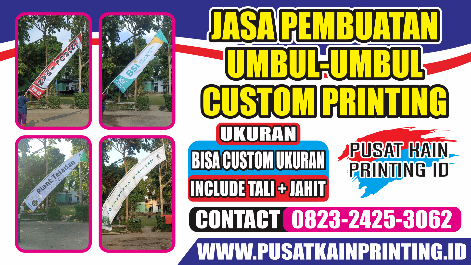 Untuk mendapatkan jasa cetak umbul-umbul kain custom printing terbaik, kunjungi PUSAT KAIN PRINTING ID. Kami menawarkan layanan dengan kualitas cetak yang tajam dan ketepatan waktu produksi yang unggul. Didukung oleh desainer berpengalaman, kami juga memberikan berbagai keuntungan seperti promo diskon, gratis ongkir, serta opsi pembayaran COD.Â