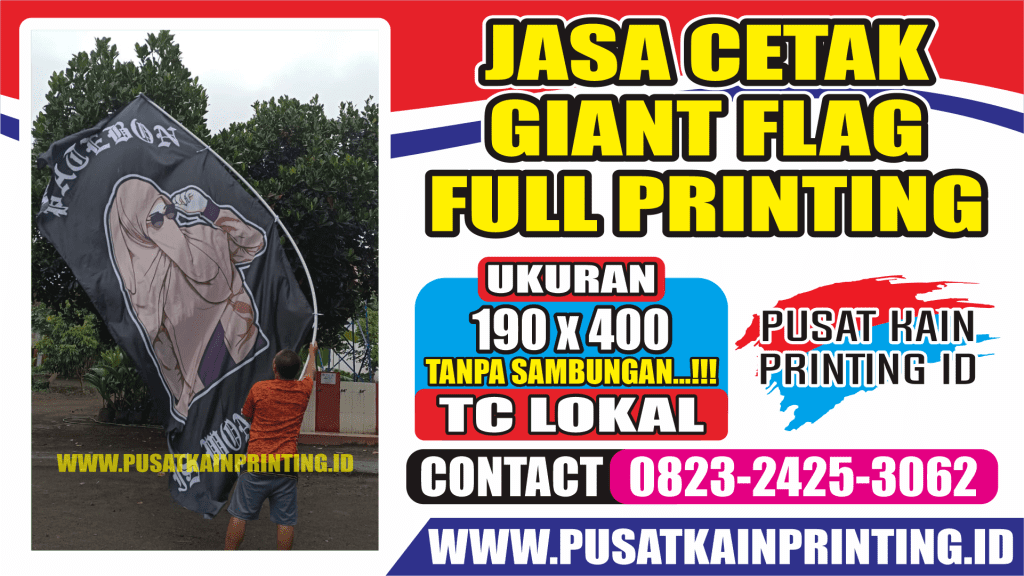 Kami menawarkan Kualitas Printing Kain Bendera Terbaik, Ketepatan Estimasi Waktu Produksi, Didukung Desainer Grafis Handal, Banyak Promo Menarik serta kita bisa yang lain tidak bisa yaitu Bisa Pesan BAYAR DI TEMPAT alias COD…!!! Apabila berminat memesan Giant Flag Custom Printing Ukuran 200cm x 400cm ( 2m x 4M ), Silahkan langsung menghubungi Customer Service Kami di nomor 0823-2425-3062 atau bisa klik dibawah ini untuk langsung terhubung ke whatsapp resmi kami :